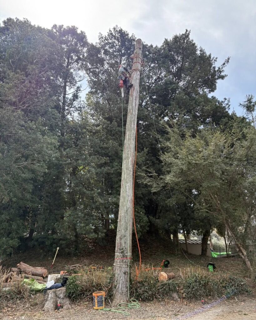 そこで活躍するのが、ツリークライミングによる伐採技術です💪